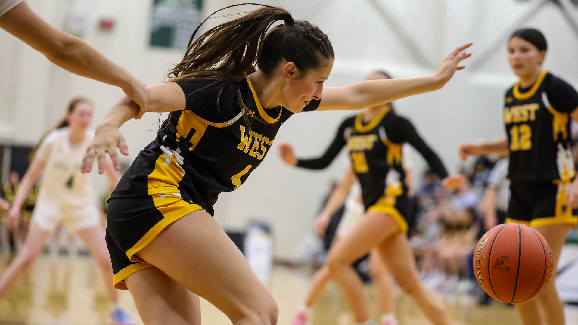 Shawnee Mission West stayed hot from beyond the arc as Madison Andre’s triple stretched its lead to 40-34. From there, a combination of ice cold shooting and turnovers enabled the Vikings to salt the contest away from the charity stripe.