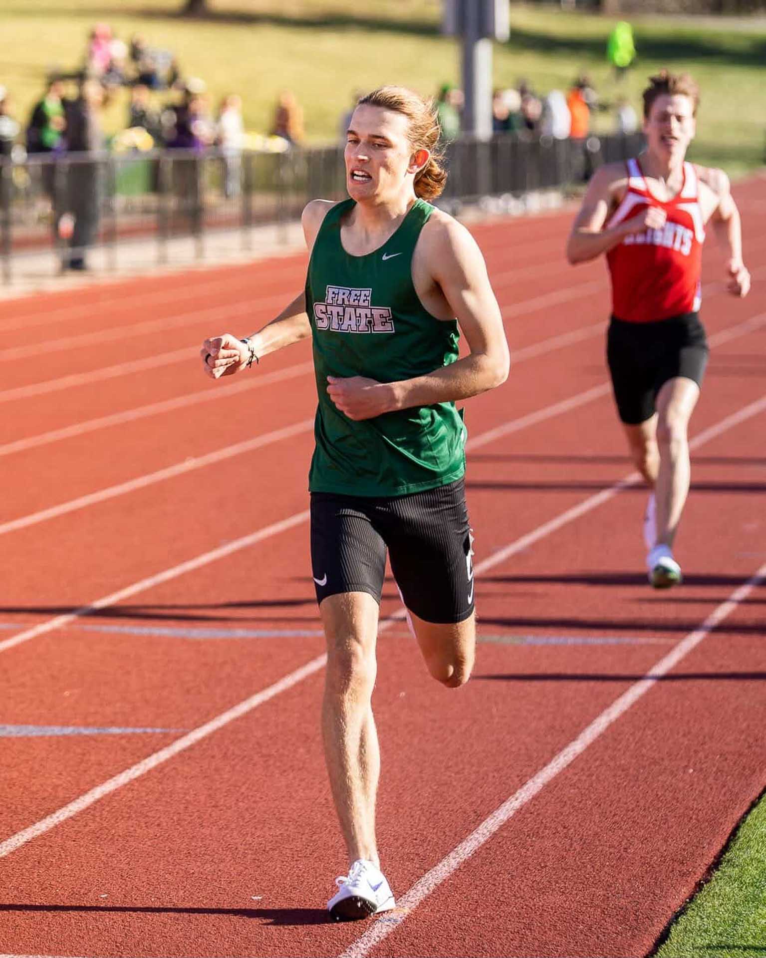 Also for the Free State girls, Beatrice Essman placed first in the 400-meter dash. Taylor Hulcher (1600m) and Chloe Voss (pole vault) earned runner-up finishes.