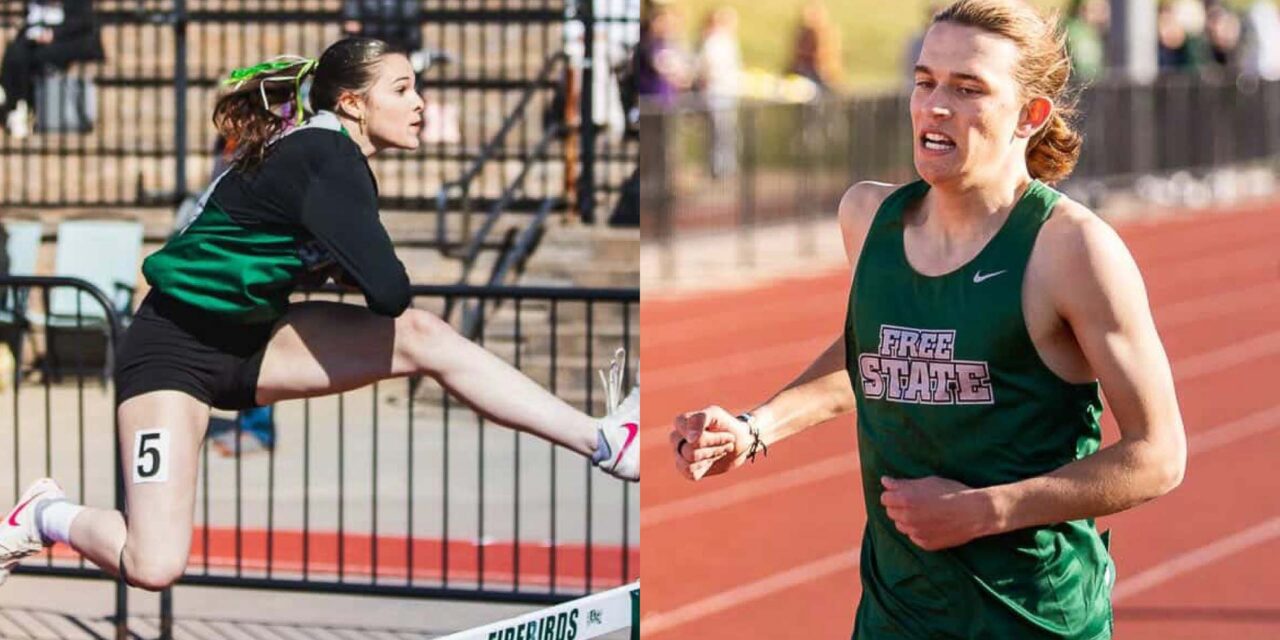 Free State’s Shana Teenor and Jonah Frye were not among the dozen gold-medal finishes for the Firebirds during the Coach Beardslee Invite on April 2 at Washburn Rural in Topeka, but they did contribute to the slew of other podium-worthy results for the team. Teenor and Frye are both pictured competing during the Early Bird Invitational on March 27 at Free State High School in Lawrence.