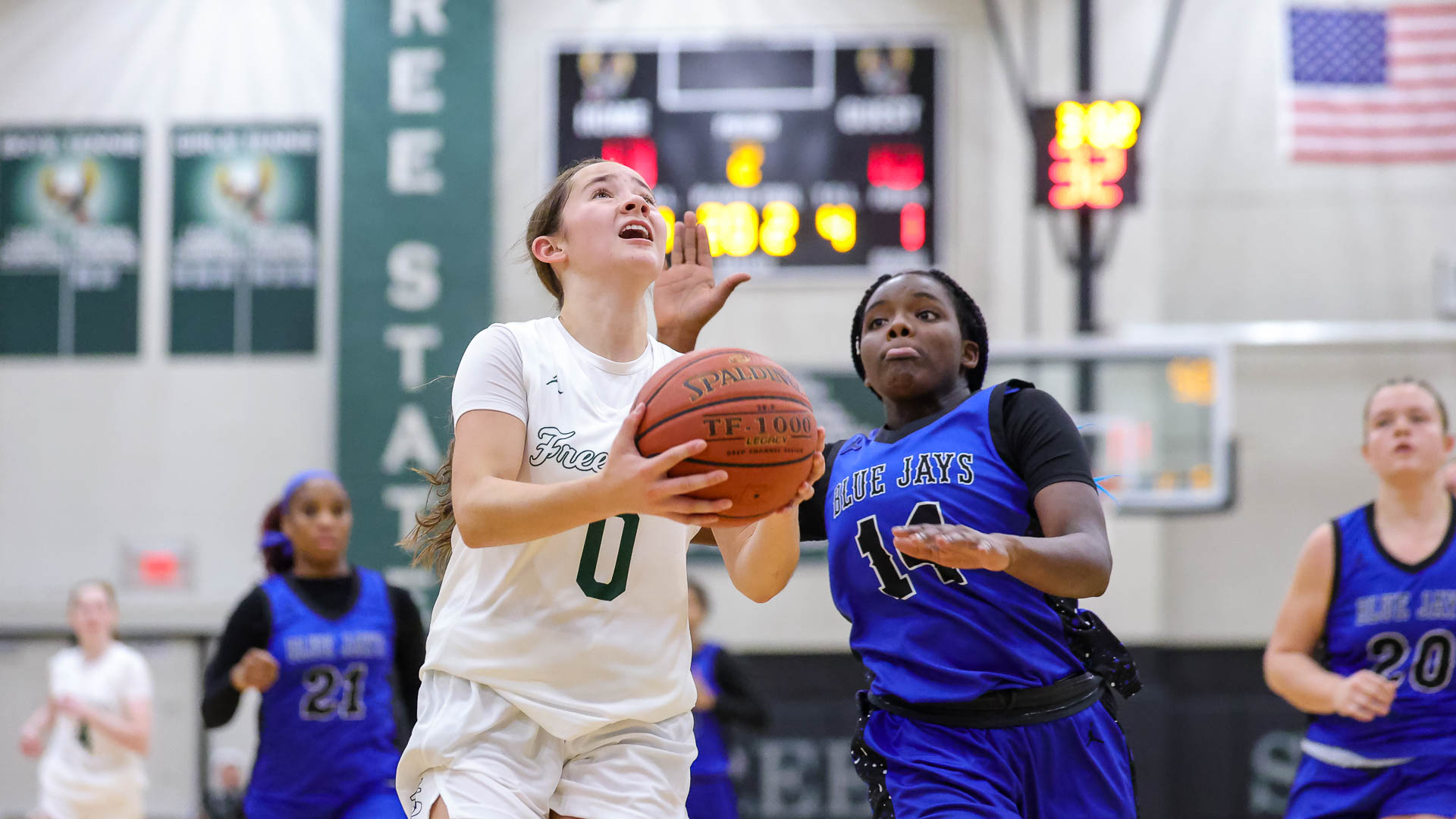 The floodgates were still open when Free State returned to the court for the second half — opening on a 7-0 blitz via Vail’s 3-ball and consecutive buckets from McClorey to hand the Firebirds a 27-15 advantage.