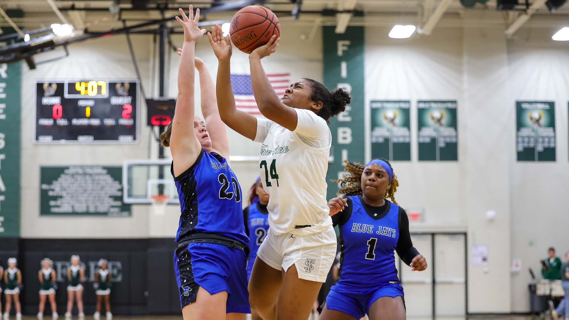 The Firebirds then surged ahead with an extended 18-3 run and led 20-15 at the half, with McClorey and fellow freshman guard Quinlynn Vail combining for 13 points.