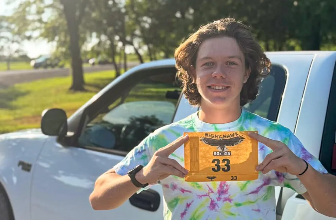 Moses Minor, 15, ran an ultramarathon on June 28, 2025 as part of the Night Hawk race at Clinton Lake. He placed in the top 10.