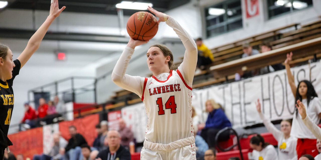 Lawrence’s lead ballooned to 48-24 as Nauholz dropped in seven straight points — followed by Jada Baars-Turner’s driving layup late in the third en route to the 24-point victory.