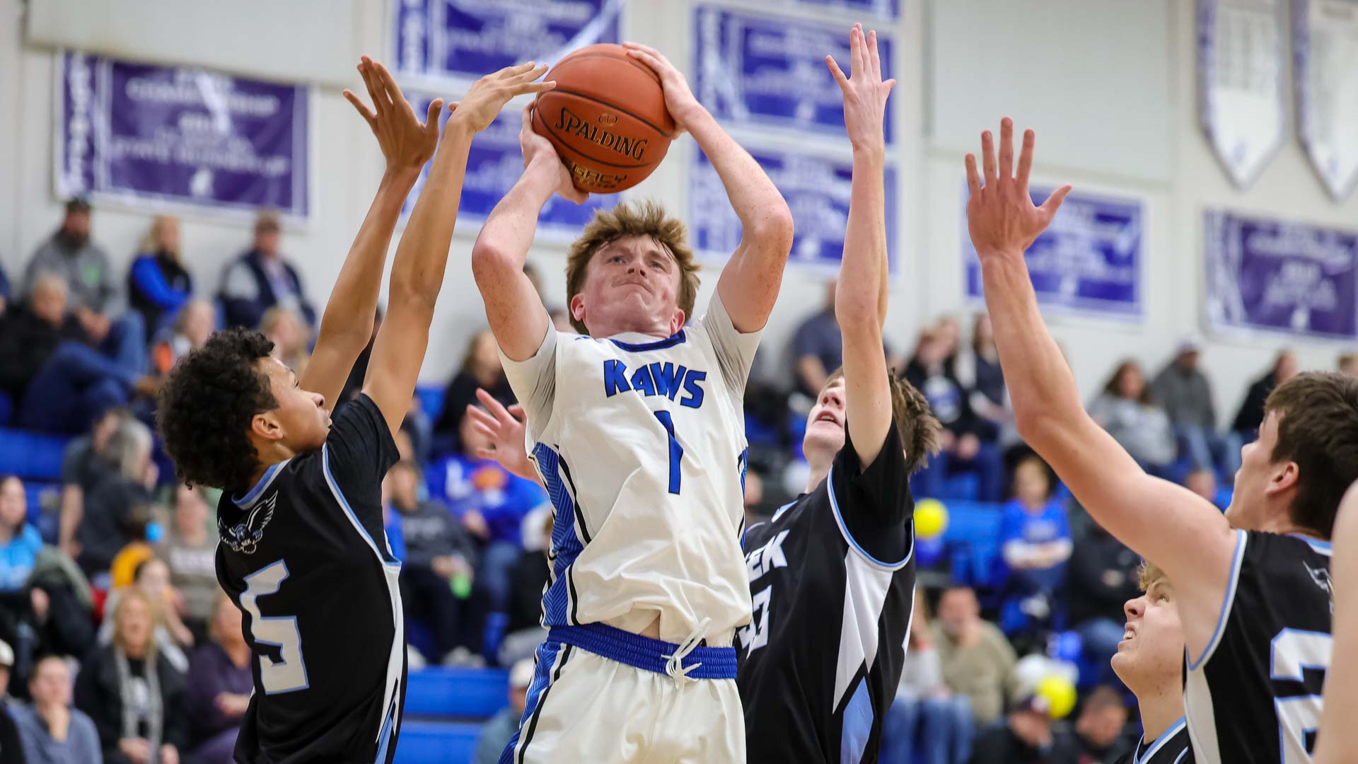 Perry-Lecompton (11-6 overall) got off to a blazing start — pouring in 15 points over the opening four minutes of the non-league tilt. Also distributing the wealth evenly on the offensive end in the opening frame, the Kaws received scoring contributions from Graves, junior forward Kayden Baker, senior guard Colby Krein, junior guard Houston Habiger, junior forward Thomas Marcellino Jr. and senior guard Dayton Tucker.